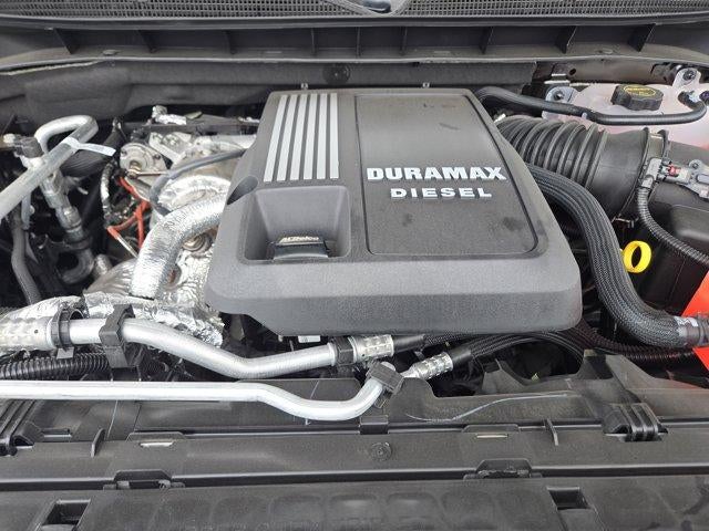 ENGINE, DURAMAX 3.0L TURBO-DIESEL I6 (305 hp [227 kW] @ 3750 rpm, 495 lb-ft of torque [671 Nm] @ 2750 rpm) Includes (KW5) 220-amp alternator, (K05) engine block heater and (N10) dual exhaust.), CONVENIENCE PACKAGE II includes (UG1) Universal Home Remote, (A48) rear sliding power window, (PZ8) Hitch Guidance with Hitch View and (UET) Trailering App Includes (UQA) Bose Premium Sound System. SAFETY PACKAGE includes (UV2) HD Surround Vision, (UD5) Front and Rear Park Assist, (TRG) Trailer Camera Provisions, (UKV) Trailer Side Blind Zone Alert, (UFB) Rear Cross Traffic Braking, (UKK) Rear Pedestrian Alert and (U12) Perimeter Lighting, SUNROOF, POWER on Crew Cab models, DARK APPEARANCE PACKAGE includes Black badging/decals and exhaust tips. When equipped with (L3B) TurboMax engine includes (NB5) Single Exhaust and (VTA) Black Chrome exhaust tip, LPO. When equipped with (L84) or (LZ0) engine includes (N10) Dual Exhaust with Black tips. Includes (V76) Black Tow Hooks and (WPQ) Protection Package. PROTECTION PACKAGE includes (B1J) wheel house liners and (CGN) Chevytec spray-on bedliner, SEATS, FRONT BUCKET with center console (Includes (EPH) Electronic Transmission Range Selector (console mounted). ADAPTIVE CRUISE CONTROL, TAILGATE, MULTI-FLEX with six functional load/access features, NOTE: Auto release can be disabled if ball hitch is installed. See Owners manual for details, AUDIO SYSTEM, CHEVROLET INFOTAINMENT 3 PREMIUM SYSTEM with Google built-in compatibility (select service plan required, terms and limitations apply) including navigation capability, 13.4 diagonal HD color touchscreen, includes multi-touch display, AM/FM stereo, Bluetooth® streaming audio for music and most phones; featuring Wireless Apple CarPlay and Wireless Android Auto capability for compatible phones, advanced voice recognition, in-vehicle apps, personalized profiles for infotainment and vehicle settings (STD), TRANSMISSION, 10-SPEED AUTOMATIC with Electronic Transmission Range Selector (ETRS), electronically controlled with overdrive, tow/haul mode and steering column paddle shifters. Includes Cruise Grade Braking and Powertrain Grade Braking, SEAT, UP-LEVEL REAR WITH STORAGE PACKAGE 60/40 folding bench for Crew Cab models, includes full-length bench seat, seatback storage on left and right side, center fold out armrest with 2 cupholders, full cab width under-seat storage, (includes child seat top tether anchor).