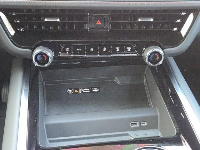 COMFORT PACKAGE includes (A45) memory settings, (UQS) Bose 10-speaker Surround with CenterPoint, (DXR) outside heated power-adjustable, power-folding, body-color mirrors with driver-side auto-dimming and integrated turn signal indicators, (KI3) heated steering wheel, (KA6) second row outboard heated seats, (ATT) second row power 60/40 split-folding bench seats, (AS8) third row power 60/40 split-folding bench seats, (TGE) LED animated headlamps and (TAU) LED animated tail lamps, WHEELS, 24 X 9.5 (61 CM X 24.1 CM) MACHINED AND PAINTED CARBON FLASH METALLIC Includes (SFE) wheel locks, LPO.), SUNROOF, POWER PANORAMIC, DUAL-PANE, TILT-SLIDING with express-open and close and power sunshade, SEATS, SECOND ROW BUCKET, POWER RELEASE, SUSPENSION, AIR RIDE ADAPTIVE, ENGINE, 5.3L ECOTEC3 V8 with Dynamic Fuel Management, Direct Injection and Variable Valve Timing, includes aluminum block construction (355 hp [265 kW] @ 5600 rpm, 383 lb-ft of torque [518 Nm] @ 4100 rpm) (STD), TRANSMISSION, 10-SPEED AUTOMATIC electronically controlled with overdrive, includes Traction Select System including tow/haul (STD), AUDIO SYSTEM, 17.7 DIAGONAL ADVANCED COLOR LCD DISPLAY with Google built-in compatibility (select service plan required, terms and limitations apply), including navigation capability, connected apps, personalized profiles for each drivers settings, Natural Voice Recognition and Phone Integration (STD), ADVANCED TRAILERING PACKAGE includes (UKW) Blind Zone Steering Assist with Trailering, (PZ8) Hitch View and (UET) Smart Trailer Integration Indicator. Chevrolet RST with Black exterior and Jet Black/Victory Red interior features a 8 Cylinder Engine with 355 HP at 5600 RPM*.