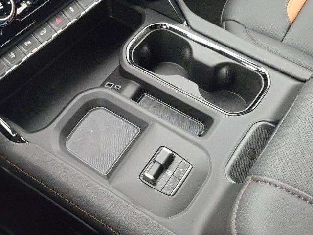 ENGINE, DURAMAX 6.6L TURBO-DIESEL V8, B20-DIESEL COMPATIBLE (470 hp [350.5 kW] @ 2800 rpm, 975 lb-ft of torque [1322 Nm] @ 1600 rpm) (Includes (K05) engine block heater.), AT4 PREMIUM PLUS PACKAGE includes (PDO) AT4 Preferred Package, (CF5) power sunroof, (CWM) Technology Package and (VXW) AT4 high clearance step, LPO, MAX TRAILERING PACKAGE includes 3500 HD Frame, 3500 HD Leaf Springs, 12 Rear axle, 3500 HD Shock Package, (CGN) spray-on bed liner and (Z6A) Gooseneck / 5th Wheel Prep provisions with bed stamped holes and caps, TECHNOLOGY PACKAGE includes (DRZ) Rear Camera Mirror and (UV6) Multicolor 15 Diagonal Head-Up Display, AT4 PREFERRED PACKAGE includes (UG1) Universal Home Remote, (A48) rear sliding power window and (U01) Roof Marker Lamps, ASSIST STEPS, POWER RETRACTABLE, BLACK includes LED lighting, AUDIO SYSTEM, 13.4 DIAGONAL PREMIUM GMC INFOTAINMENT SYSTEM WITH GOOGLE BUILT IN APPS SUCH AS NAVIGATION AND VOICE ASSISTANCE includes color touch-screen, multi-touch display, AM/FM stereo, Bluetooth® streaming audio for music and most phones; featuring wireless Android Auto and Apple CarPlay capability for compatible phones (STD), TRANSMISSION, 10-SPEED AUTOMATIC. GMC AT4 with Sterling Metallic exterior and Jet Black with Kalahari accents interior features a 8 Cylinder Engine with 470 HP at 2800 RPM*.