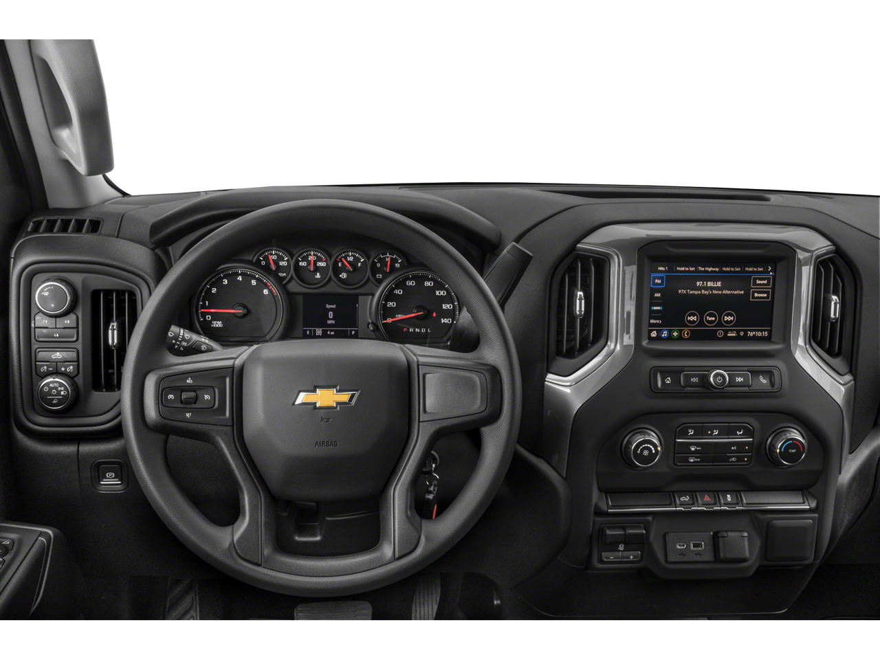 CUSTOM CONVENIENCE PACKAGE includes (BTV) Remote Start, (C49) rear-window defogger, (UF2) bed LED cargo area lighting, (QT5) EZ Lift power lock and release tailgate and (JL1) Trailer brake controller, LPO, OFF-ROAD ASSIST STEPS, 3 ROUND TUBULAR, BLACK (dealer-installed), INFOTAINMENT PACKAGE includes (U2K) SiriusXM Radio and (UE1) OnStar, AUDIO SYSTEM, CHEVROLET INFOTAINMENT 3 SYSTEM 7 diagonal color touchscreen, AM/FM stereo. Additional features for compatible phones include: Bluetooth® audio streaming for 2 active devices, voice command pass-through to phone, wired Apple CarPlay and Android Auto capable. (STD), ENGINE, 6.6L V8 with Direct Injection and Variable Valve Timing, gasoline, (401 hp [299 kW] @ 5200 rpm, 464 lb-ft of torque [629 N-m] @ 4000 rpm) (STD), TRANSMISSION, 6-SPEED AUTOMATIC, HEAVY-DUTY (STD). Chevrolet Custom with Summit White exterior and Jet Black interior features a 8 Cylinder Engine with 401 HP at 5200 RPM*.