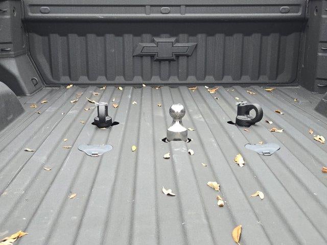 LTZ CONVENIENCE PACKAGE includes (A50) bucket seats with (D07) center console, (KQV) heated and ventilated front seats, (QT6) power up/down tailgate, (UF2) bed LED cargo area lighting, (UBC) USB Ports, (UQA) Bose Premium Audio System and (K4C) Wireless Charging, SAFETY PACKAGE includes (UD5) Front and Rear Park Assist, (UKV) Trailer Side Blind Zone Alert, (UFG) Rear Cross Traffic Alert, (UV2) HD Surround Vision, (UVN) Bed View Camera and (TRG) Trailer Camera Provisions Includes (HS1) Safety Alert Seat.), Z71 OFF-ROAD AND PROTECTION PACKAGE includes (Z71) Off-Road suspension with off-road tuned twin tube shocks, (JHD) Hill Descent Control and (NZZ) skid plates (transfer case and oil pan), (CGN) Chevytec spray-on bedliner, (AAK) All-weather Z71 floor liners, LPO, Z71 grille insert (replaces Bowtie emblem) and Z71 fender badge (replaces "4X4" decal on bed), LTZ CONVENIENCE PACKAGE II includes (A48) Rear sliding power window, (UG1) Universal Home Remote, (KA6) Rear heated seats and (KSG) Adaptive Cruise Control. TAILGATE, MULTI-FLEX with six functional load/access features, NOTE: Auto release can be disabled if ball hitch is installed. See Owner's manual for details, LPO, HITCH PACKAGE Gooseneck ball and chain tiedown kit with case, (dealer-installed), WHEELS, 20" (50.8 CM) POLISHED 12-spoke, AUDIO SYSTEM, CHEVROLET INFOTAINMENT 3 PREMIUM SYSTEM with Google built-in compatibility (select service plan required, terms and limitations apply) including navigation capability, 13.4" diagonal HD color touchscreen, includes multi-touch display, AM/FM stereo, Bluetooth® streaming audio for music and most phones; featuring Wireless Apple CarPlay and Wireless Android Auto capability for compatible phones, advanced voice recognition, in-vehicle apps, personalized profiles for infotainment and vehicle settings (STD), TRANSMISSION, ALLISON 10-SPEED AUTOMATIC. Chevrolet LTZ with Lakeshore Blue Metallic exterior and Jet Black interior features a 8 Cylinder Engine with 401 HP at 5200 RPM*.